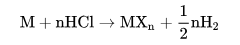 稀鹽酸能夠溶解許多金屬(金屬活動性排在氫之前的),生成金屬氯化物與氫氣: