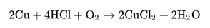 銅、銀、金等活動性在氫之后的金屬不能與稀鹽酸反應,但銅在有空氣存在時,可以緩慢溶解 ,例如: