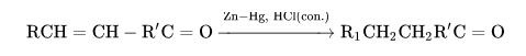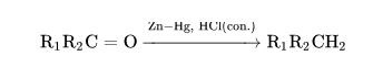 鋅粒與氯化汞在稀鹽酸中反應可以制得鋅汞齊,后者與濃鹽酸、醛或酮一起回流可將醛酮的羰基還原為亞甲基,是為克萊門森還原反應: