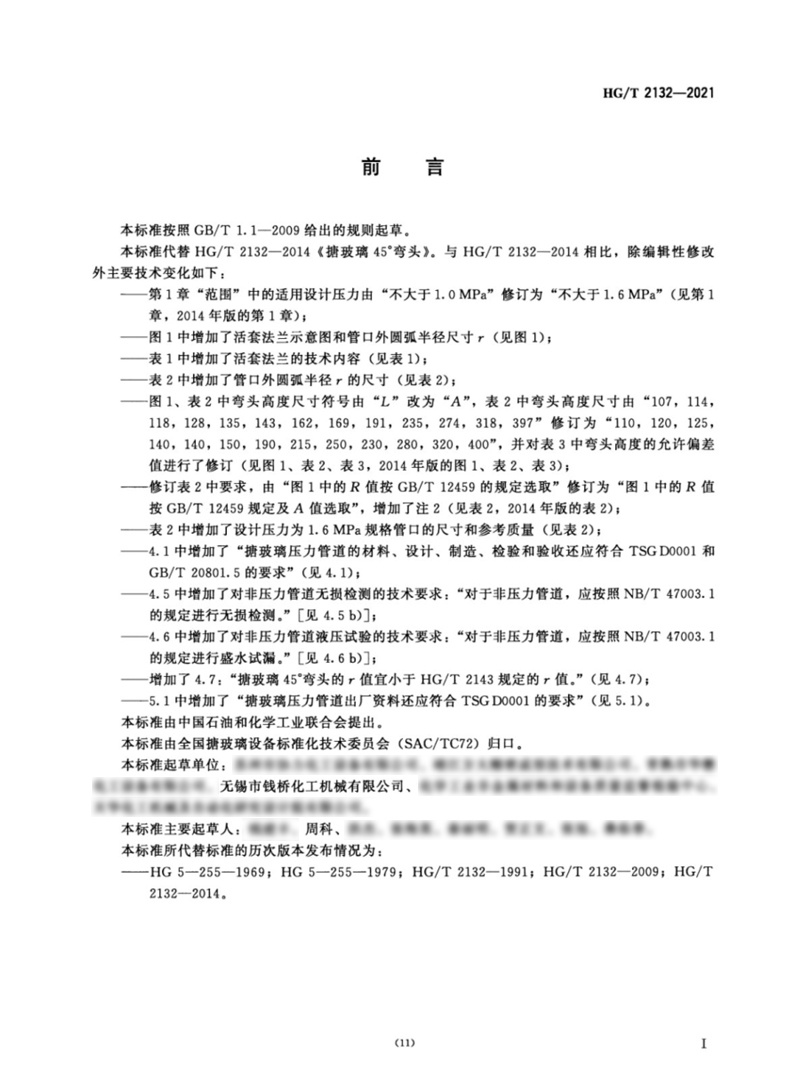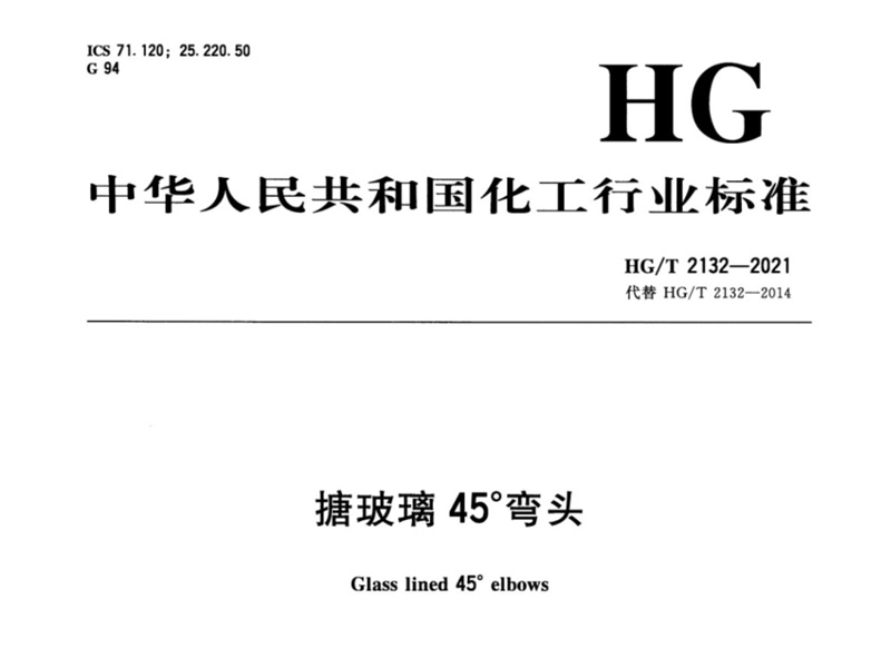 中華人民共和國化工行業(yè)標準HG/T 2132-2021搪玻璃45°彎頭 點擊下載搪玻璃45°彎頭行業(yè)標準