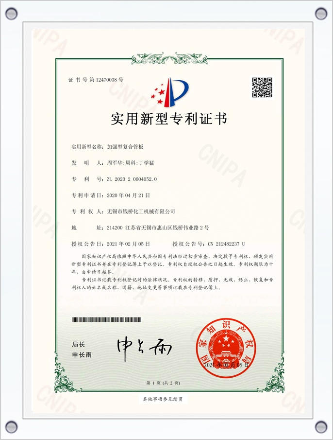加強(qiáng)型復(fù)合管板專利證書