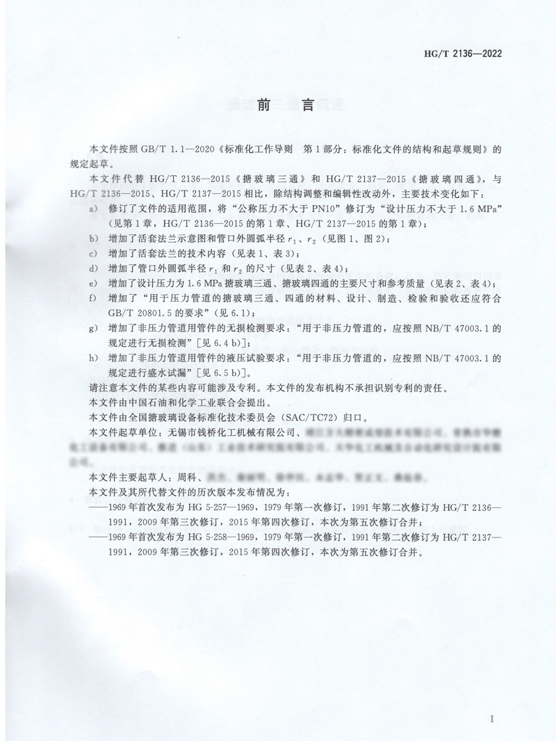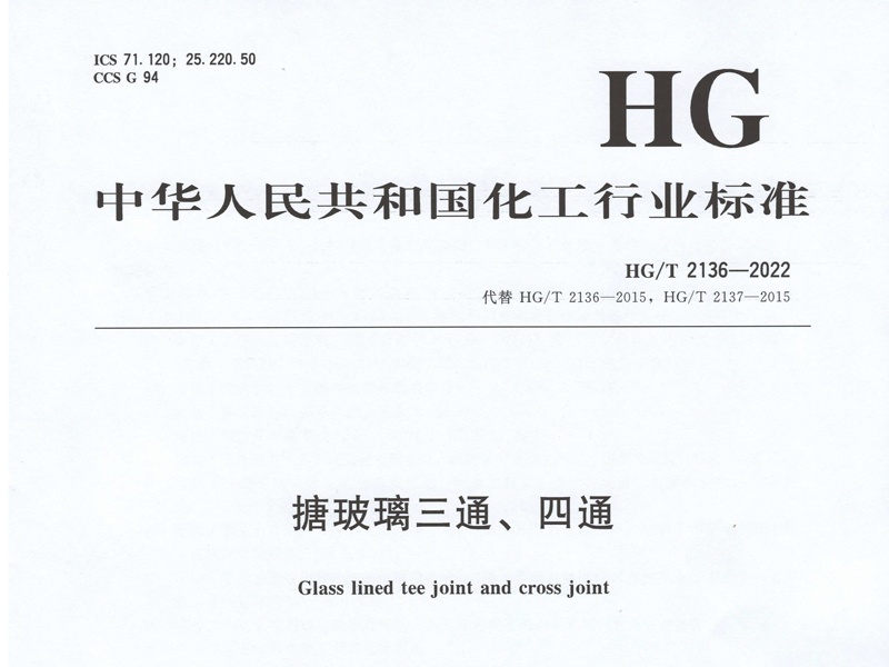 中華人民共和國(guó)化工行業(yè)標(biāo)準(zhǔn)HG/T 2136-2022搪玻璃三通四通 點(diǎn)擊下載搪玻璃三通四通行業(yè)標(biāo)準(zhǔn)