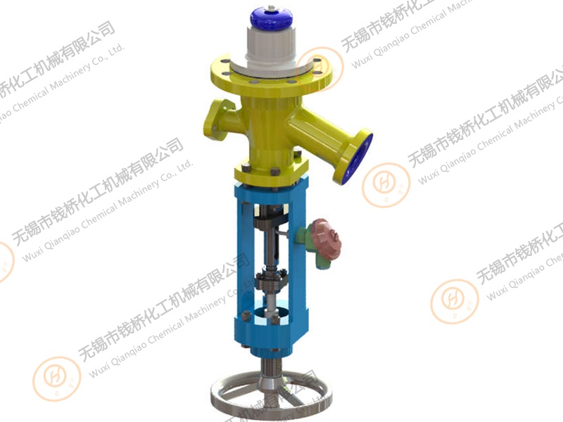 Bottom outlet valve (65°) gap free with pneumatic actuator.搪玻璃上展式自動(dòng)放料閥 *內(nèi)置測(cè)溫氣動(dòng)放料閥Can not be used for liquids containing fluoride ions (such as hydrofluoric acid, etc.), nor can it be used for strong alkalis and concentrated phosphoric acid with a temperat