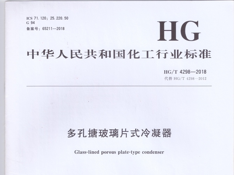 2021-01-23HG/T 4298一2018范圍,本標(biāo)準(zhǔn)規(guī)定了多孔搪玻璃片式冷凝器的型式、基本參數(shù)、主要尺寸、要求、銘牌、出廠文件、包裝、運輸和貯存。本標(biāo)準(zhǔn)適用于器內(nèi)設(shè)計壓力大于-0.1MPa、小于0.25MPa ,夾層內(nèi)設(shè)計壓力小于或等于0.35MPa ,冷凝器面積3㎡~ 60㎡,器內(nèi)工作溫度0℃~200℃ ,夾層內(nèi)工作溫度小于或等于95℃的多孔搪玻璃片式冷凝器...