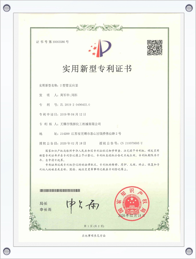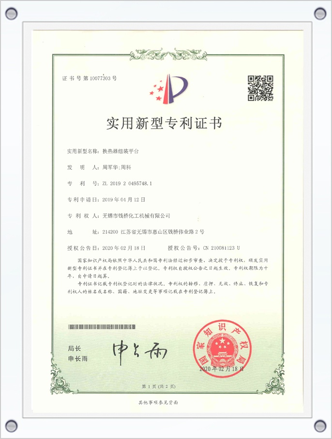 碳化硅換熱器鋼襯四氟管板密封裝置專利證書