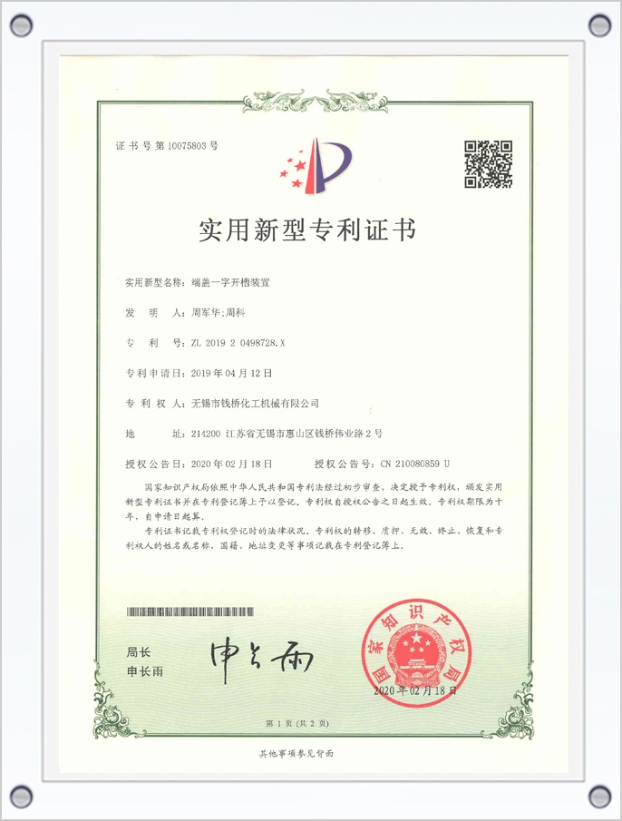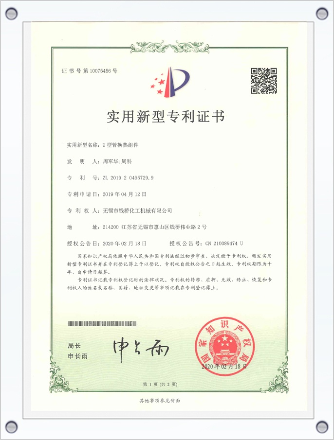 碳化硅換熱器外側(cè)密封裝置專利證書
