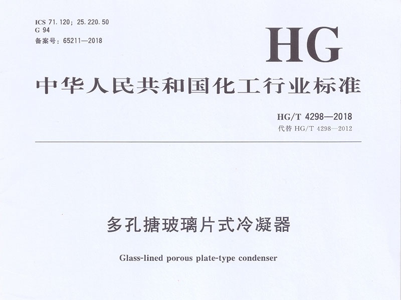 無錫錢橋化工機(jī)械有限公司參與起草中華人民共和國(guó)化工行業(yè)標(biāo)準(zhǔn)HG/T 4298-2018《多孔搪玻璃片式冷凝器》。 ...