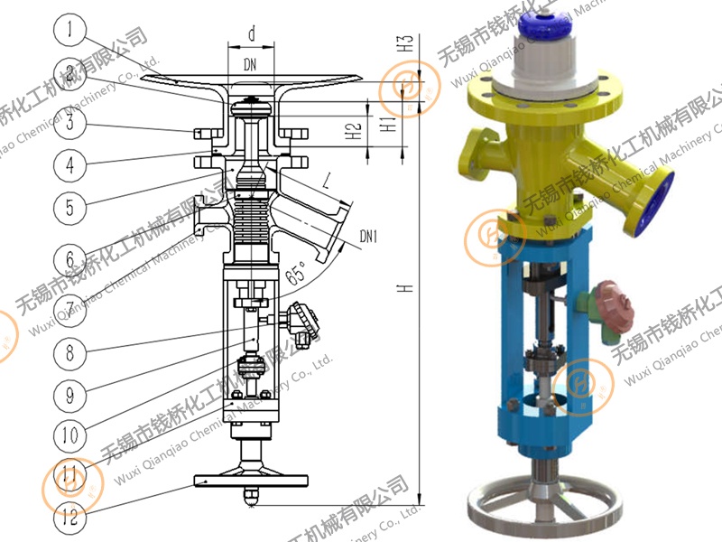 搪玻璃上展式手動(dòng)放料閥 *內(nèi)置測(cè)溫手動(dòng)放料閥
